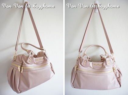 2011 Von Von 夢幻經典皮革媽媽包上週一終於寄來美國了,這麼粉嫩夢幻的經典皮革媽媽包,我等不及要揹它出門逛街去,今天即使穿的再休閒,揹上它感覺就像個優雅的媽咪,現在趕緊來寫開箱文,好讓大家參考。