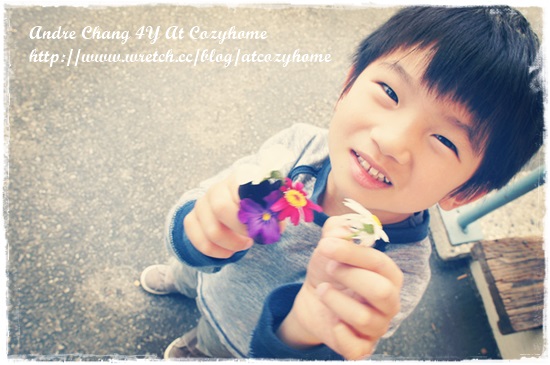 另外,他最近喜歡撿很多小花小草來種植栽。