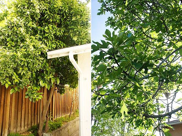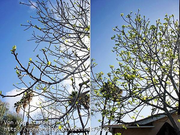 到了四月,右邊的無花果樹的樹葉已經大到足可成蔭。