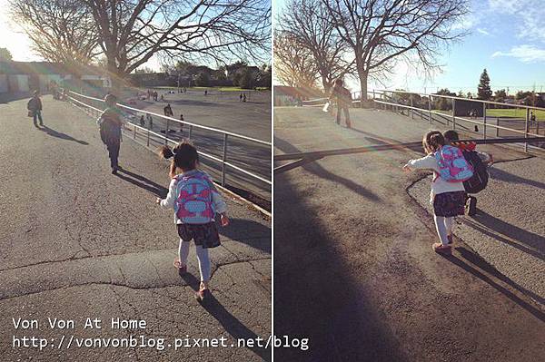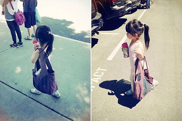 看著她自己堅持揹舞蹈袋子的模樣,感覺獨立又長大了些,袋子裡頭有芭蕾舞鞋、踢踏鞋、外套及零食。