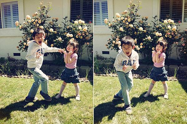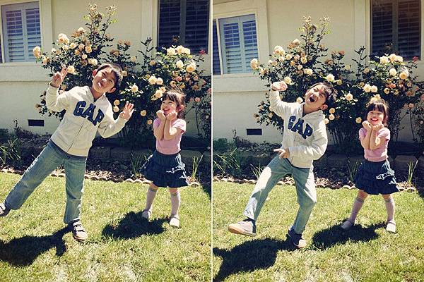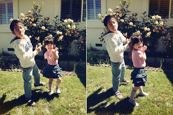 雖然有時會吵架,但還是能常常玩得很快樂的兄妹,於家中前院。