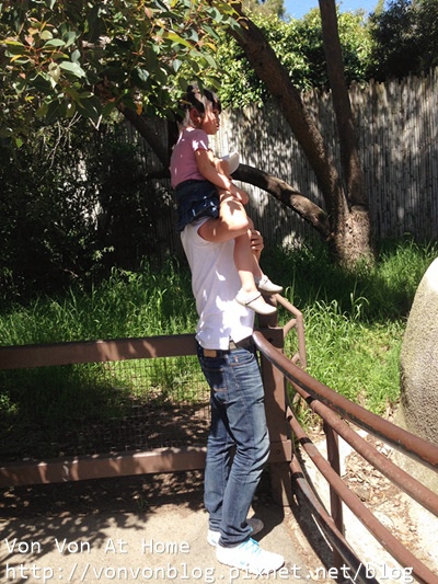爸爸一把扛著女兒看圍欄內動物, 那身影值得留念。