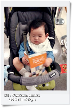 KJ在買票之時,我在書架欄拿了一本免費的東京旅遊手冊給安德烈拿著把玩,他果真給我研究了起來,我想他應該是在研究"到底這本可不可以吃咧?"