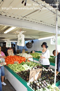 這裡根本就是墨西哥的天堂,聽說很多墨西哥人都是靠這個市場維生,裡面充斥著很多看起來很像仿冒品的玩具跟物品,艷陽高照,裡頭攤販的喲呵聲吵的市場沸沸揚揚,東西一開價也沒有便宜到哪? 天生超不會殺價的我笑笑就做罷?反正大部分商品很不適合我們,只好直接到賣果菜區,看看有沒有新鮮的蔬果。