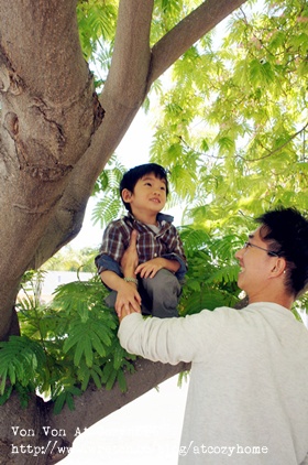這是我們家前院的大樹,喝飽了水,曬足了陽光,枝葉群中佈滿了淡淡粉紅色的粉撲花,數百朵花朵每週以茂盛的姿態狂妄在翠綠中生長使得枝椏低垂,成了一片好大的樹蔭,每次只要一開前門,一股淡雅的自然清香會從花蜜間飄來,聞著心怡。