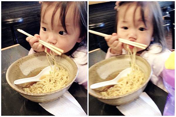 美國日本拉麵店服務生好驚訝這麼小的baby會用筷子吃拉麵。