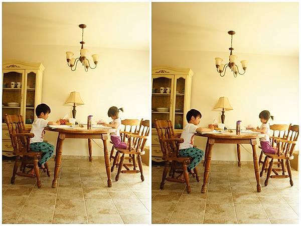 他倆玩得一身髒,全身泥巴,我立刻拎著他們去浴室泡澡,從頭到腳刷洗乾淨。孩子踏出浴室,滿是皂香。屋外的火紅夕陽此刻已經曬在廚房的爐灶上,該是煮晚餐的時候了。
